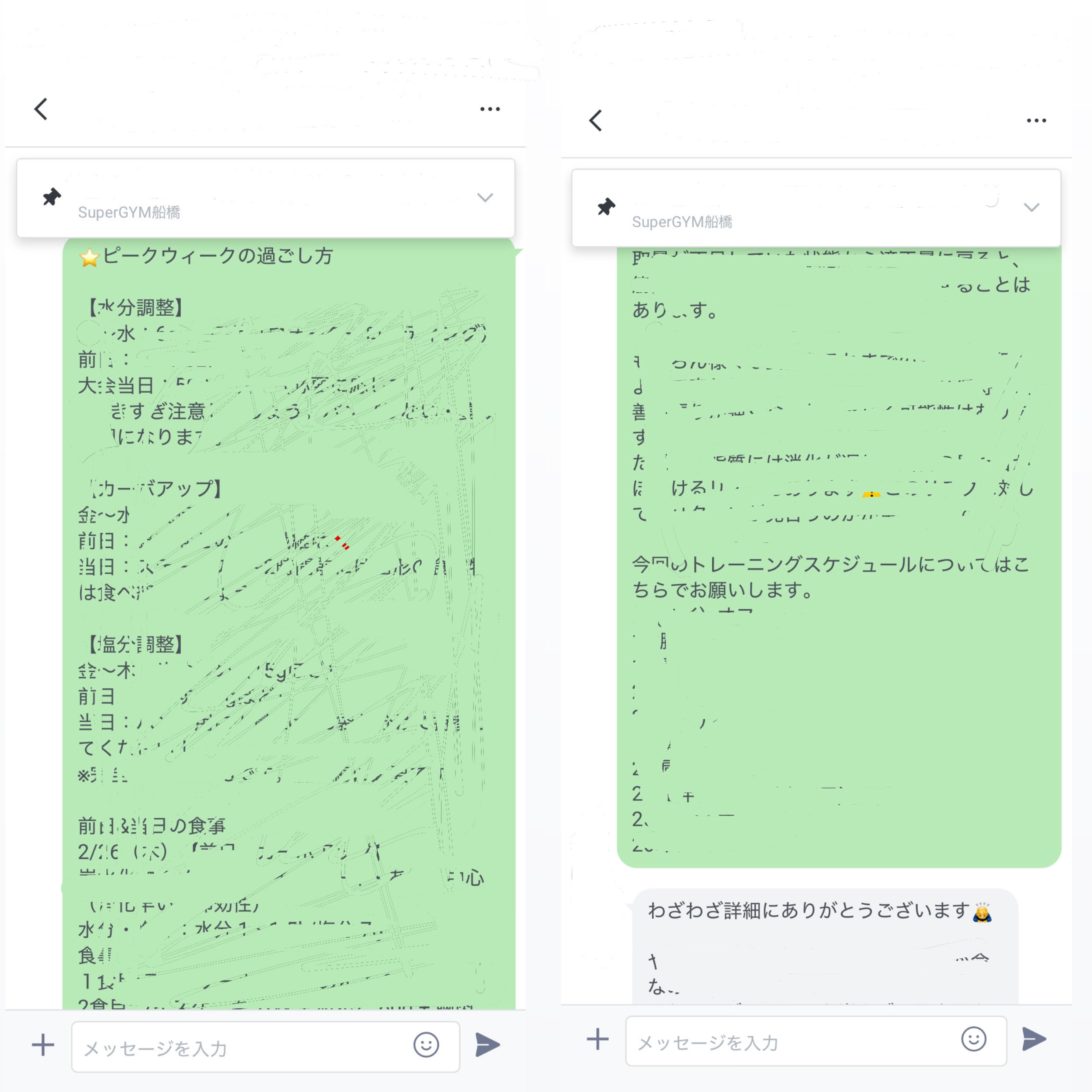 • 体重・食事・トレーニング内容・体調の報告